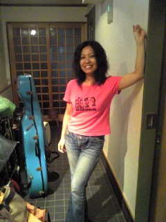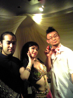 『TAMAM!!!』ツアー×『山田晃士&流浪の朝謡』ゲスト参加◎8/28(木) 『TAMAM!!!』(タマム)でアコーディオン弾いてきました! @パーカーハウスロール (京都市・烏丸松原下がる) メンバーは、、 ↑左からベリーダンサーのMINORIさん、EMIさん、YUMAさん。 うひゃー、セクシーじゃー! 妖しくて、艶ややかで、時に激しく情熱的な舞い! シビレました。 アドリブ中にダンサーさんと目が合って微笑みかけてくれた時なんか、、、、 もうねぇ、何というか至福です(笑 ↑ギター・浦川裕介。 一緒に演奏するたびにどんどんアホになっていってるんすよねぇ。 (イイ意味で!) 『デジタルモンキー』という曲の中ではアヴァンギャルドなラップを披露。 笑いました。 素晴らしい! ↑ダラブッカ&パーカッションの永田充。 君は何て笑顔が似合うんだ!!(笑 バッキバキのリズムも最近は笑顔で叩き出すもんで『おっかねぇ奴だな~。』と感じるようになりました! (もちろんイイ意味で!) あっぱれ!! ↑今回のゲスト! サックスの内藤大輔さんが万歳しているところをライブ後に撮影しました(笑 『dorIis』さんのサポートで内藤さんとは初めて共演させてもらって、 タマムライブで三年ぶりの再会となりました!! 色っぽくて、けれどもブチ切れると止まらない内藤さんのサックス、サイコーでした!! +都丸智栄/アコーディオンという編成。 『チキチキ』と『ハバナギラ』という曲を歌ったんですが、声裏返ってしまって。 次は喉をならしてからライブをすることにします (笑 ◎8/29(金) 『山田晃士&流浪の朝謡』にアコーディオンでゲスト参加させていただきました! @SHOW BOAT (東京・高円寺) 超楽しかった! 「共演・狂宴」というイベント名通り、もの凄いライブになりました!(笑) メンバーは、、 ・山田晃士/ヴォーカル&ギター ・渡辺隆雄/トランペット ・福島久雄/ギター ・伊藤啓太/ベース ・ロジャー高橋/ドラム <ゲスト> ・梅津和時/サックス、クラリネット、バスクラリネット ・都丸智栄/アコーディオン ↓の5曲に参加させていただきました。 ◆『古い写真』 ・・ミュゼット調のワルツ。難曲でした。 そして、晃士さんが切なく、情熱的に歌いあげておりました。 弾きながら泣きそうになってましたよ~(笑 ◆『愛欲という名のカルナバル』 ・・フラメンコ調の前半、間奏で渡辺さんがトランペットを高らかに吹くシーン、、かっちょよかったなぁ。 中盤、ギターの福島さんとアドリブバトルさせていただきました! うおおお!って感じで弾きましたよ~(笑 楽しかったー! ◆『ジゴロとベラミー』 ・・サルサ調の熱~い曲。渡辺さんとオブリで絡んだり、リズムをアコーディオンで出したり、福島さんと『バモス!』って一緒に叫んでみたり。 ◆空騒ぎスケルツォ ・・晃士さんがお休みで、梅津さんが参加。バルカン風インストの変態高速変拍子曲。 渡辺さん、梅津さん、都丸でアドリブをぐちゃんぐちゃんに回しました。 エンドルフィン出まくりで今ならできると思い、回転ジャンプ弾きにトライ! 派手ですが、リスクも高い! ラインが絡まってマイクがもげるという悲劇に。 、、、ダメでした(笑 ワイヤレスマイク等の装備を整えてから再トライしたいと思います。 ◆水無月のマリオネット ・・アンコールのラストに全出演者で。 梅津さんと都丸の腰振りダンスでライブ本編に乱入できたのも、楽しかったです! (ビデオあったら見直してみたいですね。恥ずかしくて死ぬかもしれませんが。) 尊敬する達人・超人の先輩方に囲まれてのライブ、自分にとって多いに収穫のあるライブになりました。 ありがとうございました。 m(__)m ◎8/30(土) 『TAMAM!!!』(タマム)でアコーディオン弾いてきました! @シェヘラザード (四ツ谷) メンバーは、、 ・YUMA、SAFI/ベリーダンス ・都丸智栄/アコーディオン ・永田充/ダラブッカ&パーカッション ・多田葉子/サックス ・熊坂義人/ベース 『TAMAM!!!』久しぶりの東京ライブ! SAFIさん、多田さん、熊坂さんという強烈なゲスト陣のおかげで盛り上がりました! 最後はお店がディスコ状態に!(笑 これぞ求めているモノ! 楽し過ぎでした。 お足元の悪い中、遊びに来てくださったお客様、ありがとうございました! スタッフの皆さん、お疲れ様でした。 カクテル、料理ともに絶品でした! 草野さん、MAHAさん、大変お世話になりました! m(__)m ↑『タマム』左から永田充、YUMAさん、都丸 ↑タマム楽隊記念写真。 左から熊坂さん、充、都丸、多田さん。 モヒカン兄貴の熊坂さん、ベースSOLOぶっ飛んでおりました。 思わず吹き出してしまうほどに。 多田さんのサックス、ずっと前から好きだったのでタマムで共演できて嬉しかったです! 踊りながら練り歩いてのパッキパキのSOLO、カッコイイ~!! ↑SAFIさんとYUMAさん。 何なんだ! この色気! 半端ない!! 『俺もいつかお二人のような色気が欲しいのです』とMCしたらお客さんに爆笑されました。 ↑そんなお姉様方が水タバコを吸う図。 ↑モヒカン兄貴・熊坂義人さんが水タバコを吸う図。 [0回] 2008年 09月 02日| 