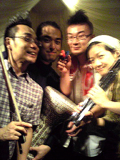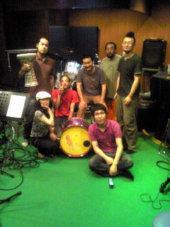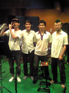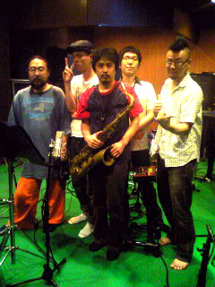 お茶の間マーサ×ゲストミュージシャンのレコーディング×ミックスようやっとBLOGの更新です(汗 ◎8/31(日) 『<ザッハトルテ>本生ライブ・お茶の間マーサ』でアコーディオン弾いてきました! @マーサ (大阪・阿波座) 生音カフェライブはやはり僕らに合っていて、弾いていて気持ちよかったすね~。 髪の毛も切りたてでモヒカンが整っているので、帽子は被らずに演奏しました。 アンケートで『モヒカンのアコーディオンはインパクトあってイイ!』 という声もいただきましたので(嬉しや!) これからはちょくちょく登場させたいと思います。 どうぞ、よろしくお願いします。 m(__)m 2NDステージの頭には、演奏席の前のテーブルに コーヒーとマーサ特製のチョコバナナチーズケーキを用意していただいて、 まったりカフェ~な雰囲気を味わえるという小粋なはからいも! 美味しかったな~。 また食べたいなぁ。 ライブの最後に、梅津和時さん直伝の『踊り弾き』にトライしてみたんですが、 勢い余ってテーブルを思いきり蹴り、ウエッコのコーヒーこぼしちゃったんですよ! うんぎゃー! (´Д`) ウエッコごめん! そしてマーサさん、すいませんでした! うーむ、この技、家で修業する必要があるな、、(笑) ◎9/4(木) ザッハトルテのレコーディング最終日でした! この日はゲストミュージシャンを招いてのレコーディング! いや~楽しかった! ↑記念写真を撮りました! 左から永田充。 ダラブッカとダウルと大太鼓で参加してもらいました。 ややこしい変拍子パートも何のその。 カッチョイイ、ダラブッカSOLOもバッチリいただきました! ありがとう!! 左下、ベリーダンサーのYUMAさん。 ジルで録音に参加していただきました! おかげで華やかなシーンを作ることができました。 ジルの音は気持ちいいっすね~。 ありがとうございます! バスドラの後ろが田中良太さん。 ジャンベ、ドラム、鳴り物等、いろんなパーカッションで録音に参加していただきました! アレンジのアイデアもいただきまして。 感謝です!! 田中さんのおかげでグルーヴ感溢れる曲が完成しました! ありがとうございます! +ザッハトルテの三人とBLOGでも紹介しました今回のレコーディングエンジニアの佐藤さん。 超お世話になっております。 ◎9/5(金) <ザッハトルテ>の新アルバム、編集作業に立ち会っておりました。 音は9月4日で全て録音し終わったので、ここから編集<ミックス>という作業にうつります。 楽曲の中での音のバランスを整えたり、飛び出してしまった音のチェック、 録音したどのテイクを使うか検討するなど盛り沢山。 エンジニア佐藤さんと相談、協力しながら曲を練り上げていきます! 何回も聞いたので夜は耳が馬鹿になっておりました~(笑 今回のアルバム、やんちゃで、シックで、楽しくて、切なくて、 なかなか素晴らしい仕上がりになりそうです!! お楽しみに! [0回] 2008年 09月 08日| 日記|Comment(2)