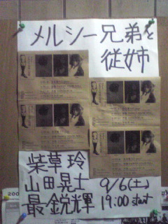 メルシー兄弟と従姉×京都市美術館演奏×さらさ西陣月例お食事ライブ◎9/6(土) 『メルシー兄弟と従姉』というライブ見に行ってきましたー! @パーカーハウスロール メルシー兄貴・山田晃士さんのSOLOガレージシャンソンは圧巻! ズドドンと響きます! メルシー弟・最鋭輝さんの作り出すGSワールドも最高! お客さんがみんな笑顔だったのが印象的でした! メルシー従姉・柴草玲さんは初めて見ました、聴きました! セクシ~でいて、ぶっ飛んだ歌詞、やさぐれた世界観、、、 うは~、めちゃ良かったです!! 出演者の皆様が強烈な個性を放っていて、えらいおもしろいライブでした。 濃厚芳醇! ラストのセッションは凄まじかったな~(笑 また是非遊びに行きたいっすー。 ◎9/12(金) <ザッハトルテ>でアコーディオン弾いてきました! @京都市美術館 芸術都市パリの100年展のオープニングアクト+ティーパーティーで演奏させていただきました。 天井が高いからリバーブがものすごくて、 (2秒~3秒はあったのではないか!?) なかなか普段味わえない音色になっておりました。 興味深い作品、いっぱいありました! エリック・サティの肖像画、ヨース毛が大好きな裸婦像、初公開のルノワール等、盛り沢山! 10月にもザッハトルテで演奏します! むほっほ。 こりゃ、楽しいっすよ~! 是非! ◎9/15(月・祝) <ザッハトルテ>でアコーディオン弾いてきました! @さらさ西陣(京都市智恵光院鞍馬口) この日は月例お食事ライブ! 満員御礼! ありがとうございます! 先月はアコーディオンが2台連続で故障するというアクシデントにみまわれたんですが、 今月は1STステージのど頭・入場曲でギターとチェロの弦が同時に切れるという事態が起こってしまいました!!(笑 急いで弦を取りに行くウエッコとヨース毛。 ステージに取り残される都丸。 う~ん、寂しかったっすな~。 何とかお喋りしてつないでおりましたが、 ああいうシーンでササッとアコーディオンSOLOできたらイカしますよね~。 次こそは!!(笑 ↓今月はこんな曲を演奏しましたよ~。 ◆セットリスト◆ ◇1ST 1・キンメギンメ 2・素敵な1日 3・ポーリーセット(アイリッシュ風組曲) 4・月光のアンナOへ 5・ザッハトルテスウィング 6・あの空に虹を、、。 ◇2ND 1・アッフェルシュツルーデル 2・ベルベルのバザール 3・ウエッコ先生の奇天烈な手品ショー~きのこ狩り 4・ウクレレワルツ~恋歌(レンカ) 5・タンゴ イン ナイト 6・蛇使いとお姫様 7・ケリーポルカ~ジョンライアンズポルカ 8・イプピアーラの夢~美しい鳥 [0回] 2008年 09月 16日| 日記|Comment(3)