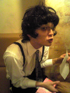 お食事ライブ◎11/17(月) 昼前に大阪・西田辺にある『ユニバーサル』へ。 調律師・安田さんにアコーディオンを修理していただきました。 いつもありがとうございます! 夜は<ザッハトルテ>の月例お食事演奏会でアコーディオンを弾きました! @さらさ西陣 この日も前回のさらさ西陣ライブに引き続き、懐かしい曲+新曲を中心に演奏。 またもや、緊張感漂うステージになってしまいました(笑 ミスった時に奇声をあげてしまいましたからね。 練習の不足を深く反省。 ステージ最後に、ちょい早い誕生日ケーキのサプライズいただきました! ありがとうございます! 幸せでございました! ↓モヒカン都丸の洋梨ケーキ・正面。 ↓横。こりゃ~、すごい! ◆12/16(火)に久しぶりのアコーディオンソロライブをやります。 @シーコケット (京都市・寺町丸太町) フランス・ブルターニュのバンドネオン奏者・フィリップさんと共演予定。 *詳細・予約は11月末にアップします。 よろしくお願いします! m(__)m ◆アヒルのワルツ http://www.aflac.co.jp/ ↑現在ザッハトルテが演奏中の『アヒルのワルツ』はアフラックのHPで見ることができます! 「CMギャラリー」をクリックしてみてください。 [0回] 2008年 11月 19日| 日記|Comment(9)