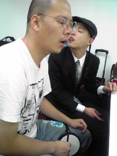 新潟・長岡演奏×ザッハトルテレコーディング×TOKYO ASIA MUSIC MARKET◎10/12(日) <ザッハトルテ>でアコーディオン弾いてきました! @千秋特設会場&サヴァティーニ (新潟・長岡) 初の新潟演奏。 昼は長岡の千秋にあるショッピングモール特設会場で演奏。 ↑どどん! ↑会場はこんな感じでした。リバーブがめちゃあるナイス空間でした!なもんで本番は生音。 満員御礼! 幅広い年齢層のお客さんに聞いていただけて嬉しいですな。 CDも飛ぶように売れました! 感謝です! 後半テンションあがって、隣に用意していただいたボトルにぶつかり、水をこぼしてしまいました! ぐべはっ。 う~ん、入りこんでしまうんすね。 すると周りがまったく見えなくなる訳で・・。 あっ、、申し訳ございません!! 夜はイタリアンレストラン『サヴァティーニ』で演奏させていただきました! ↑お店の入口。 こちらも生音。 お客さんのノリがもの凄くよくて燃えましたよー! ウエッコ先生の奇天烈な手品も炸裂しておりました。 新潟の方はあたたかいですね!(笑 また是非演奏したいす! アンコールいただいて、スウィングでカッコイイフレーズをたまたま弾けたんですが、、 ダメだ、、、 どんなフレーズだったか覚えていない~。 ◎10/13(月・祝) <ザッハトルテ>でレコーディングしておりました。 東京の某スタジオにて。 10月10日にリハーサルをした曲の、本番レコーディングをしてきました。 可愛い感じに弾けましたよ~。 こりゃ、完成が楽しみだ! ◎10/14(火) <ザッハトルテ>でアコーディオン弾いてきました!@東京・品川 『TOKYO ASIA MUSIC MARKET』というイベントに出演してきました! 何組か出演バンドがある中で、僕らは1番手。 バウロンの本岡トシ君もサポートに駆け付けてくれて、(九州ツアー帰りだったらしいす!!)バッキバッキに弾いてきました。 15分という短い持ち時間の中でスベッたり、ウケたり、叫んだり、眼鏡がズリ落ちたり、楽しいライブになりました!! ↑楽屋にて。本岡トシ君とヨース毛。 遠近法を利用した奇跡の写メールを撮ることに成功しました。 うーん、いいねぇ。 イイ表情だねぇ。 グロテスクだねぇ。(笑 [0回] 2008年 10月 19日| 日記|Comment(3)